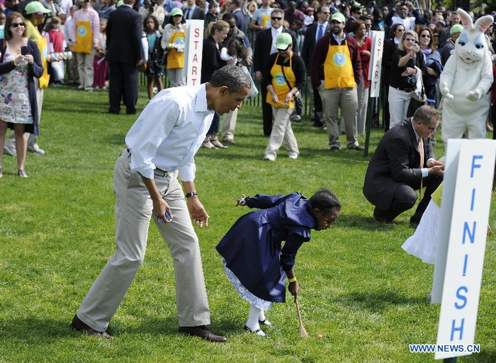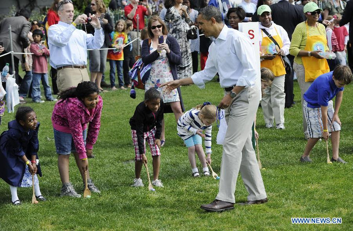 | Gia đình Obama còn tổ chức và tham gia cũng các vị khách nhỏ tuổi trong trò chơi lăn trứng truyền thống hay cùng nhau đọc sách, biểu diễn âm nhạc, chơi bóng rổ và quần vợt. Thậm chí, Tổng thống Obama đã có màn biểu diễn chống đẩy ấn tượng. |