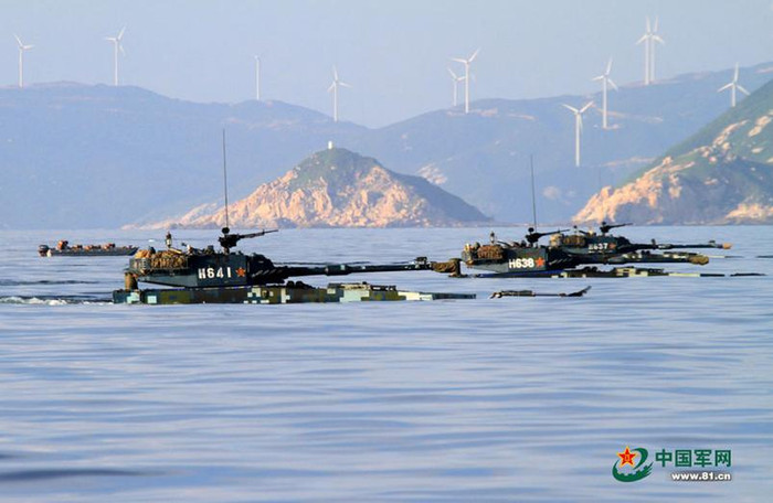 Tờ “Tin tức Trung Quốc” ngày 25 tháng 8 cũng đưa tin cho rằng, một biên đội đổ bộ trên biển của Hải quân Trung Quốc đã tiến hành tập trận đổ bộ đánh chiếm đảo. Bài báo cho biết, tham gia chỉ huy cuộc tập trận có lữ tưởng lữ đoàn đánh bộ Trần Vệ Đông, Hạm đội Nam Hải.