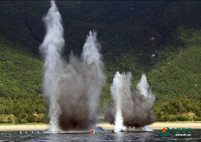 Ngoài ra, trên báo “Hoàn Cầu” còn có hình ảnh được chú thích cho biết, vào mùa hè năm 2014, ở vùng biển vịnh Bắc Bộ, vài chiếc tàu đã tiến ra vùng biển dự kiến. Đây là tổ chức khu thủy cảnh của Hạm đội Nam Hải, Hải quân Trung Quốc, kết hợp với lực lượng hàng không hải quân, không quân, ngư chính, hải cảnh, phân đội dân binh trên biển (hơn 10 loại lực lượng quân sự, dân sự), điều động tàu chiến mặt nước (tàu đổ bộ), thuyền máy, tàu cá do thám (vài chục chiếc), vài máy bay chiến đấu, tiến hành tập trận phòng thủ khu vực quy mô lớn.