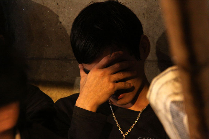 | Không giường chiếu, chàng trai này chỉ với chiếc áo khoác đắp lên người và ngủ một cách ngon lành. |
