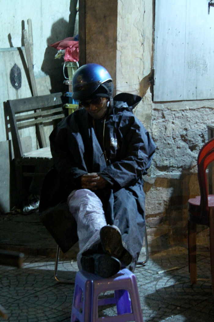 | Bác Bùi Định, quê ở Đông Hưng, Thái Bình đã 17 năm sinh sống bằng công việc này. Bác Định cho biết, mỗi đêm hai vợ chồng thu nhập được khoảng hơn 200 nghìn. |
