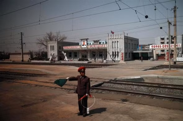 | Chờ qua đường trên một con phố ở Bình Nhưỡng. |