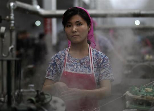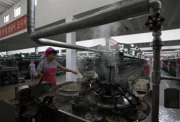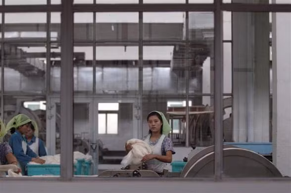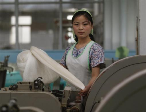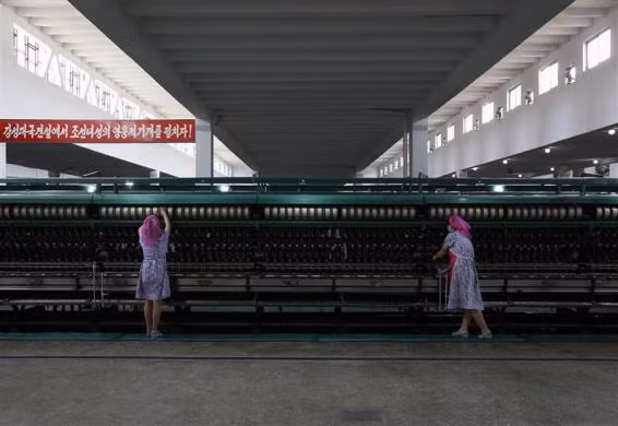 | Các nữ công nhân làm việc trong nhà máy dệt Kim Jong-suk. |