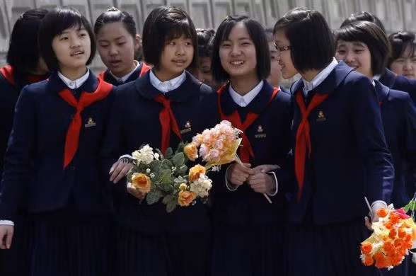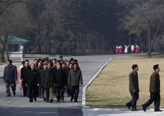 | Những du khách tới tham quan Mangyongdae, nơi sinh của người sáng lập đất nước Kim Il-sung. |