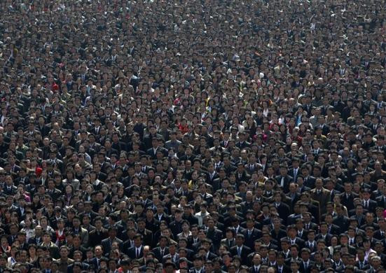 | Hàng ngàn người dân tập trung tại quảng trường trong lễ khánh thành một bức chân dung cố chủ tịch Kim Jong-il tại Bình Nhưỡng |