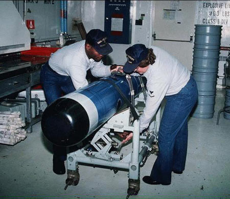 | Binh sĩ Hải quân Trung Quốc chuẩn bị đưa ngư lôi kiểu cũ vào tàu ngầm 033. |