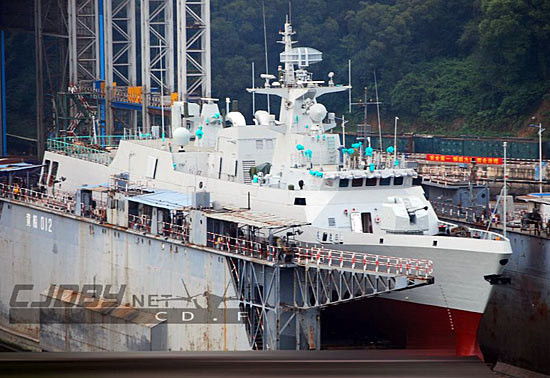 Nguồn tin từ nhà máy đóng tàu Hỗ Đông, Thượng Hải cho biết, chiếc tàu hộ vệ hạng nhẹ 056 đầu tiên sẽ đi vào hoạt động cuối năm nay. Nhìn vào các bức ảnh, tàu hộ vệ 056 được thiết kế tàng hình bề ngoài và đã áp dụng rất nhiều công nghệ hoàn thiện.
