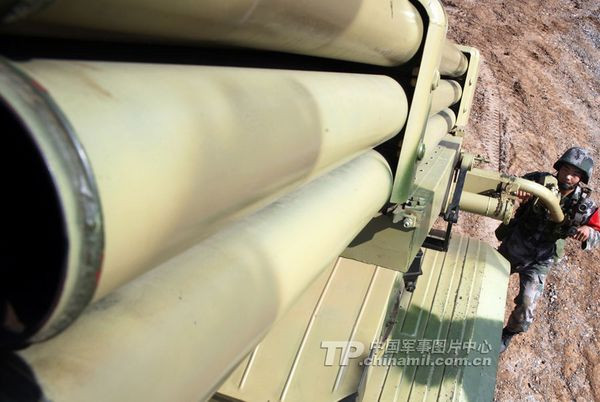 | Lực lượng Pháo binh của Đại quân khu Thành Đô tấn công mục tiêu trong quá trình vận động. |
