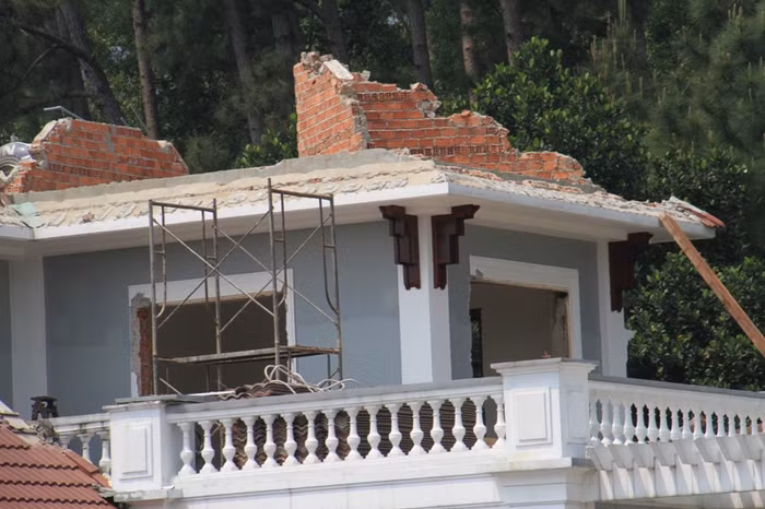 | Hiện nhiều góc cạnh của ngôi biệt thự, mái ngói...đã được tháo dỡ. |