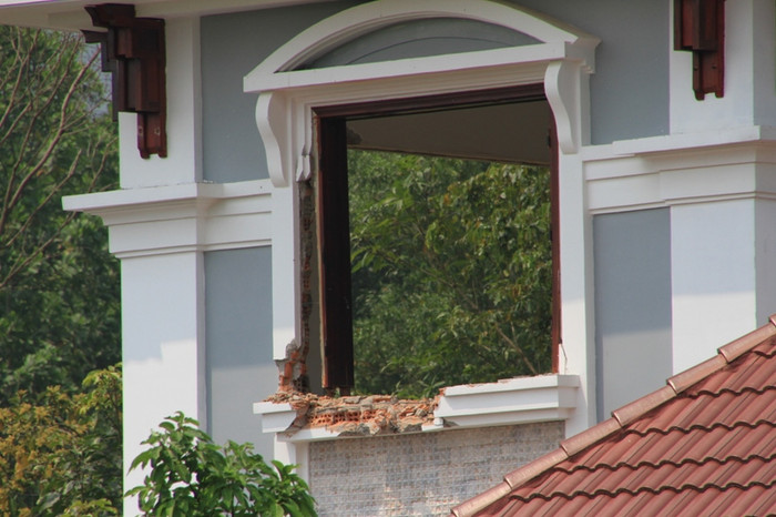| Các cửa gỗ trong ngôi biệt thự cũng đã được tháo đi. |