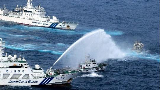 | Tàu Nhật phun vòi rồng quyết đuổi tàu Đài Loan xâm phạm |