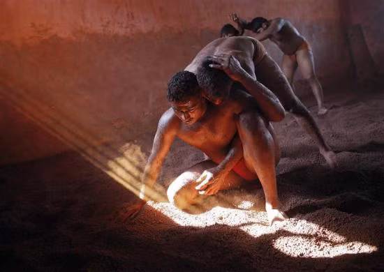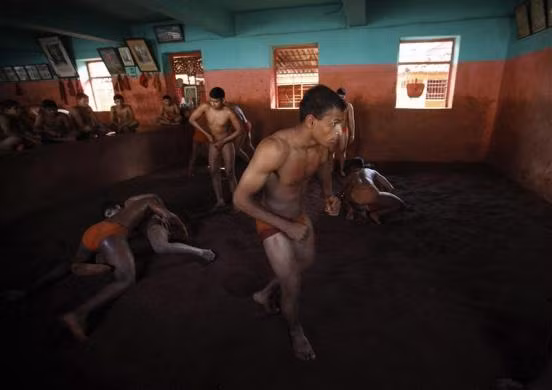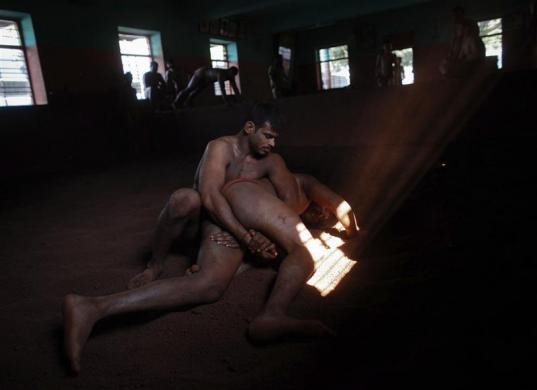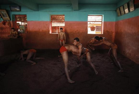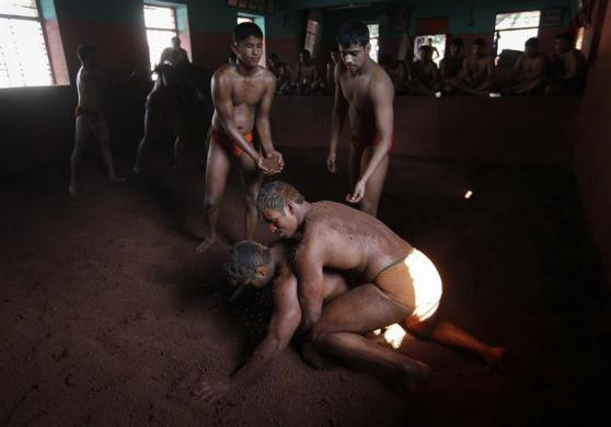 (GDVN) - Kushti ( đấu vật trong bùn ) là một môn thể thao truyền thống ở Ấn Độ nhưng ngày nay đang rất thu hút các vận động viên. Nhiều thanh niên nghèo đã lao vào luyện tập môn thể thao này với hy vọng đổi đời, để được tham dự vào các cuộc thi quốc tế như Thế vận hội hoặc Đại hội Thể thao Khối thịnh vượng chung. Ảnh các vận động viên Kushti tham gia luyện tập tại trung tâm huấn luyện Akhaara ở Kolhapur, phía nam Mumbai tháng 2/2012.