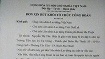 Ghi nhận thông tin từ cô giáo Nguyễn Thị Tân, chúng tôi liên hệ với ông Nguyễn Hưng, Ủy ban kiểm tra Liên đoàn lao động tỉnh Đắk Lăk và được ông Hưng xác nhận việc cô giáo Tân xin ra khỏi tổ chức Công đoàn là đúng.