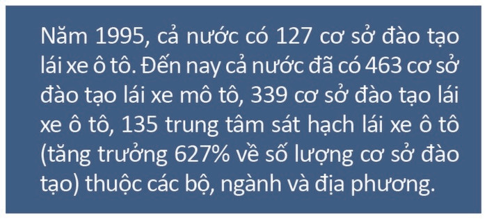 Đến nay cả nước đã có 463 cơ sở đào tạo lái xe mô tô, 339 cơ sở đào tạo lái xe ô tô, 135 trung tâm sát hạch lái xe ô tô (tăng trưởng 627% về số lượng cơ sở đào tạo) thuộc các bộ, ngành và địa phương. Điều này đã giúp người dân thuận tiện, dễ dàng hơn để tiếp cận học lấy giấy phép lái xe, đáp ứng nhu cầu học lái xe của người dân.
