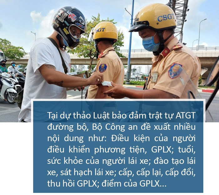 Cụ thể, từ Điều 50 đến Điều 57 Dự thảo Luật này, Bộ Công an đề xuất nhiều nội dung cơ bản như: Điều kiện của người điều khiển phương tiện tham gia giao thông, giấy phép lái xe; tuổi, sức khỏe của người lái xe; đào tạo lái xe, sát hạch lái xe; cấp, cấp lại, cấp đổi, thu hồi giấy phép lái xe; điểm của giấy phép lái xe, trên cơ sở xác định quản lý người lái xe là quản lý hành vi của con người, phù hợp với Công ước Viên năm 1968 về Giao thông đường bộ, các điều ước quốc tế Việt Nam là thành viên, tham khảo có chọn lọc kinh nghiệm của nhiều quốc gia tiên tiến trong khu vực và trên thế giới, có thể áp dụng phù hợp với điều kiện Việt Nam.
