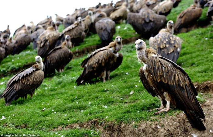 | Kền kền làm nhiệm vụ thiên táng cho người chết tại Tây Tạng. |