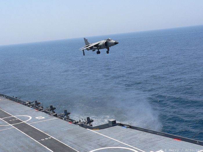 Trên mạng Phòng vệ cập nhật cũng đã đăng tải một đoạn băng video quay cảnh các chiến đấu cơ Sea Harriers của Hải quân Ấn Độ bay vờn quanh hàng không mẫu hạm INS Vikramaditya khi nó chạy song song với tàu sân bay INS Viraat.