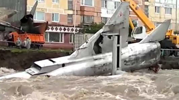 Ít nhất đã có hai máy bay chiến đấu MiG được trưng bày trong sân chơi của một tổ hợp chung cư xây dựng ven bờ sông đã bị nước lũ cuốn trôi và sau đó đã được cần cẩu đưa lên bờ.