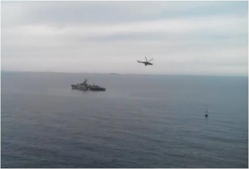 Ở video thứ nhất ghi cảnh hai chiếc Mi-35 của Nga bay quanh 1 tàu chiến không rõ của Hạm đội Biển Đen, Hải quân Nga hay tàu của Ucraine.