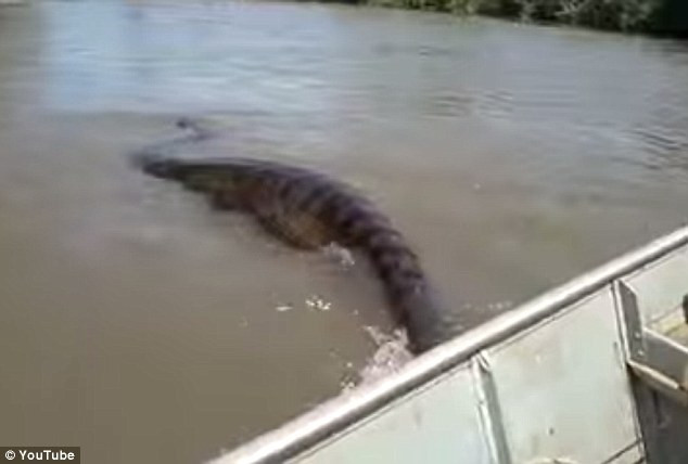 Thậm chí có một số thời điểm họ đã tóm được đuôi con trăn và cố gắng kéo nó lên khỏi mặt nước. Ước tính con vật này dài tới 5,1 mét. Bụng nó phình to như vừa thưởng thức một bữa trưa hoành tráng.