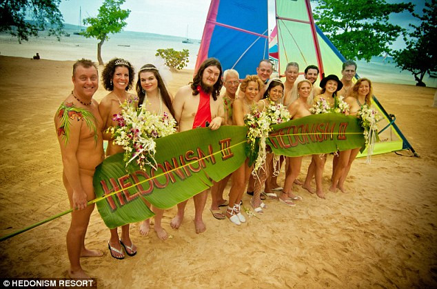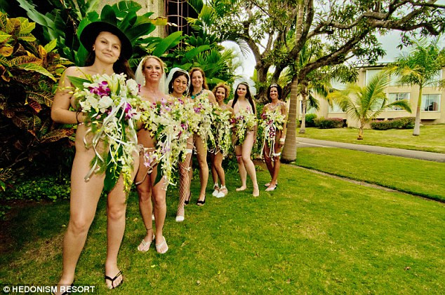 Chín cặp đôi táo bạo đã quyết định tổ chức lễ cưới tập thể trong tình trạng hoàn toàn không mặc trang phục gì tại một khu nghỉ mát nổi tiếng au Naturale ở Negril, Jamaica hôm 14/2.