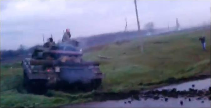 Nhiều thông tin cho rằng đây là chiếc xe tăng T-64B thuộc lực lượng tăng cường mới được Kiev điều động đến Đông Nam Ucraine tham gia giải quyết các vụ bạo động.