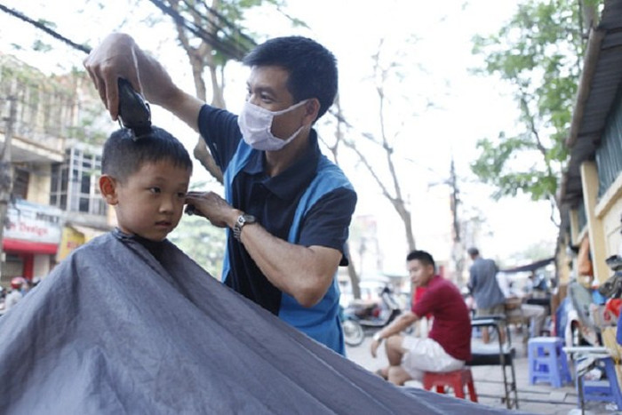 | Đến thế kỷ 21, ta vẫn có thể bắt gặp những quán cắt tóc vỉa hè như thế này ở trên những con đường Hà Nội, |