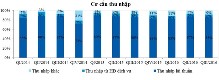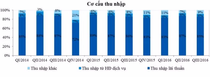 Trong quý III/2016, tổng thu nhập hoạt động của VietinBank tăng 19,25% so với cùng kỳ năm trước, đạt 20,2 nghìn tỷ đồng. Trong đó, thu nhập lãi thuần đạt 17,2 nghìn tỷ đồng, tăng 18,4% so với cùng kỳ năm trước; lãi thuần từ hoạt động dịch vụ đạt 1,2 nghìn tỷ đồng, tăng 12,75% so với cùng kỳ năm trước.