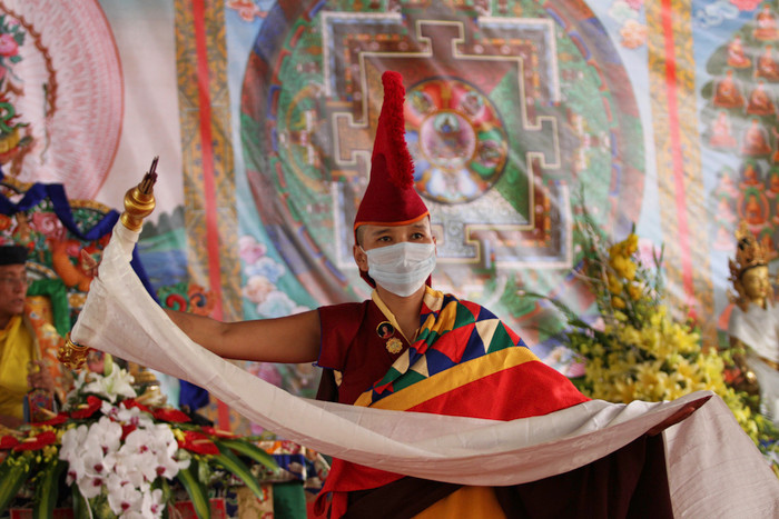 | Đức Pháp Vương Gyalwang Drukpa trong Vũ điệu 8 hóa thân Đức Liên Hoa Sinh. ảnh: BTC Drukpa. |