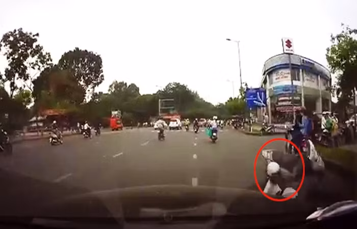 | Lái xe Mercedes truy đuổi hai tên cướp rồi húc chúng ngã lộn nhào ra đường. (NGUỒN VIDEO: VNEXPRESS) |