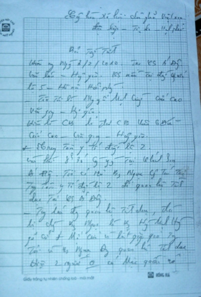 | Bản tường trình do ông Cường viết. |