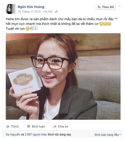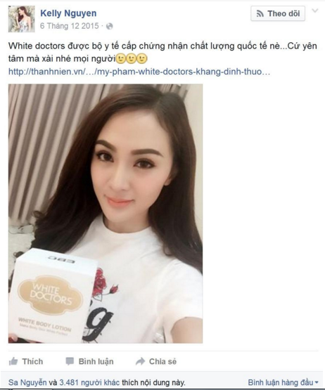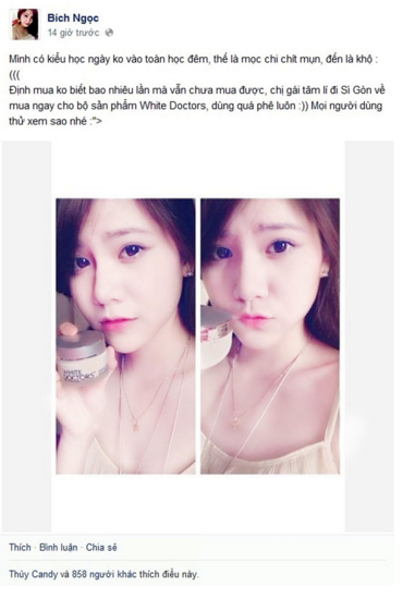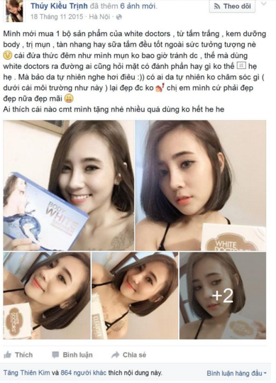 Nhiều người nổi tiếng như ca sĩ, diễn viên Trương Quỳnh Anh, hotgirl Elly Trần, Lily Luta, Kelly Nguyễn, Sĩ Thanh, Chi Pu… cũng đã chia sẻ trên trang cá nhân mình những hiệu quả khi sử dụng và sự tin tưởng của họ trong suốt thời gian qua dành cho White Doctors.