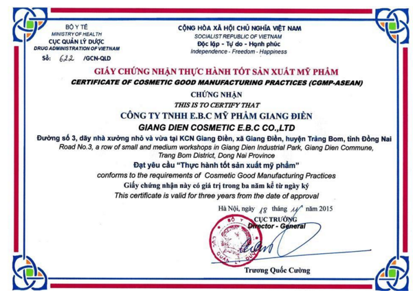 Đến tháng 8/2015 White Doctors chính thức được cấp giấy chứng nhận nhà máy đóng gói sản phẩm đạt tiêu chuẩn chất lượng Quốc Tế GMP – ASEAN và tiến hành đóng gói lại từ tháng 1/2016 với nguyên liệu chiết xuất thiên nhiên nhập khẩu đảm bảo chất lượng và hiệu quả đúng với năm 2014 áp dụng cho dân xứ nóng.