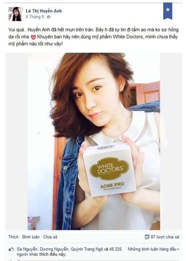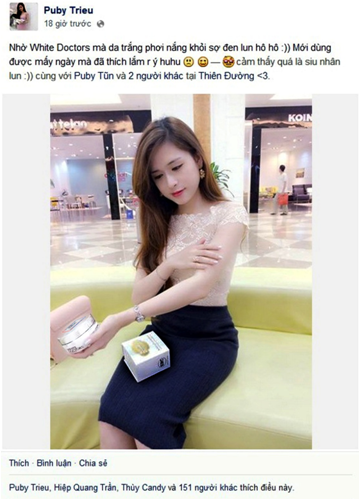 Hàng trăm hotgirl đã tin dùng và yêu thích White Doctors như Sam, Linh Napie, Lily Luta, Kelly Nguyễn, Vân Navy Hous, Yuu Quỳnh Nhi, Hồng Vân, Trịnh Hồng Quế, An Phương, Ribi Sachi, Hương Mì Gói, Sĩ Thanh, Chi Pu, Huyền Anh ( Bà Tưng ), Kiều Phạm, Emily Nguyễn, Mờ Naive, Trương Quỳnh Anh, Hà Min, Á Hân Lâm, Hoàng Mây, Elly Trần, Đàm Phương Linh…