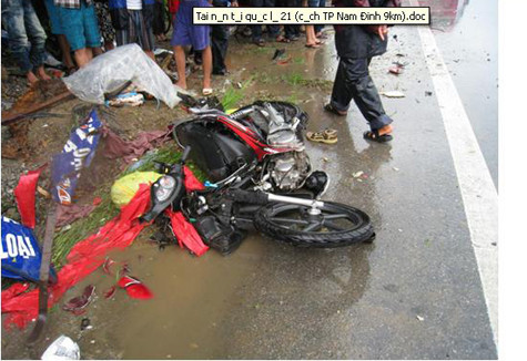 Chiếc xe khách 40 chỗ BKS 18N-5517 lưu thông hướng Hà Nội - Nam Định đã đâm trực diện vào 5 chiếc xe máy đang đi ngược chiều, cướp đi tại chỗ sinh mạng của 2 người. Có ít nhất 5 người khác đang trong tình trạng nguy kịch. Những người bị thương này đã được người dân và lực lượng chức năng đưa đi cấp cứu tại Bệnh viện đa khoa tỉnh Nam Định.