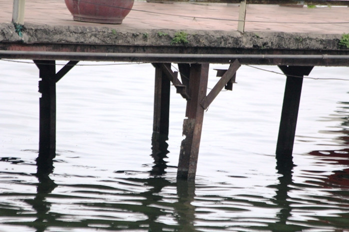 | Nhà hàng nổi Tây Long nằm chơi vơi giữa Hồ Tây. (Hà Nội). Mùa mưa bão đang đến gần khiến nhiều người lo ngại về độ an toàn của những chiếc nhà thuyền như thế này. |