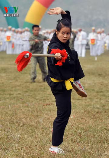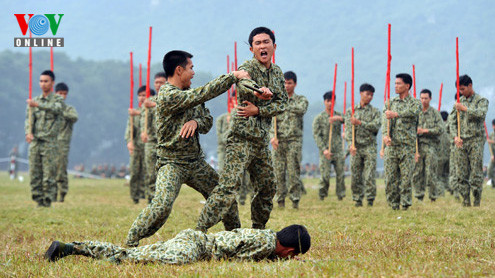 | Tiết mục do gần 1000 cán bộ trường sĩ quan Đặc công, Binh chủng đặc công, đoàn nghi lễ quân đội, CLB võ thuật thuộc trung tâm thể dục thể thao quốc phòng 2 QK7 trình diễn. |
