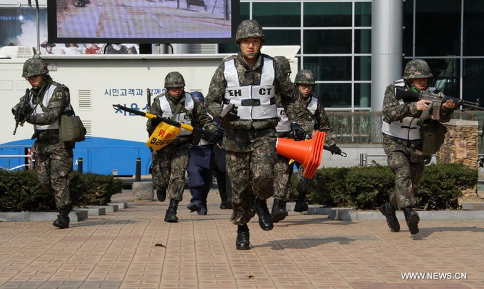 (GDVN) - Lực lượng an ninh Hàn Quốc trong những ngày qua tiếp tục tiến hành các bài tập chống khủng bố đặc biệt trên đất liền và dưới nước nhằm chuẩn bị cho Hội nghị Thượng đỉnh An ninh Hạt nhân dự kiến sẽ diễn ra tại Seoul vào ngày 26-27 tháng 3.