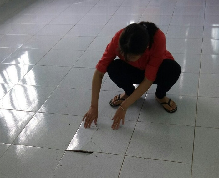 | Gạch nền tại Trường Mầm non Phú Mỹ (thị xã Phú Mỹ, tỉnh Bà Rịa - Vũng Tàu) bị nứt. Ảnh: Tác giả cung cấp |