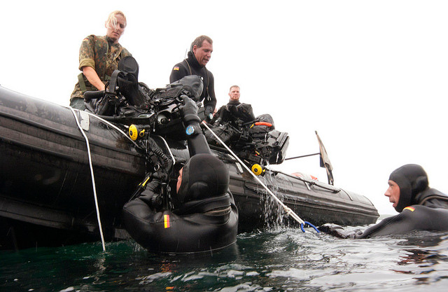 Xem người nhái của Hải quân Đức diễn tập quét mìn