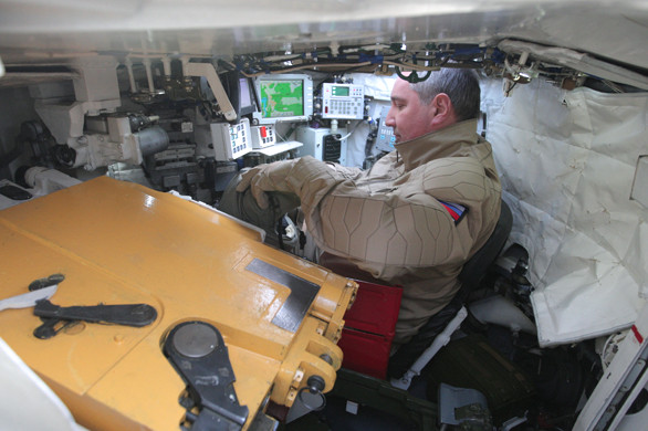 (GDVN) - Phó Thủ tướng Nga Dmitry Rogozin vừa có chuyến tới thăm trung tâm thử nghiệm tăng, thiết giáp của công ty sản xuất xe tăng nổi tiếng Uralvagonzavod ở Nizhni Tagil, vùng Sverdlovsk. Mục đích của chuyến thăm 2 ngày, Phó Thủ tướng Rogozin sẽ làm quen với khả năng tác chiến của hai loại xe tăng hiện đại T-90S và biến thể hiện đại hóa sân của nó là T-90MS. Tại đây, ông Rogozin đã yêu cầu được tự mình thực hành trong vai trò là một lái xe và cả pháo thủ trên xe tăng mới nhất T-90MS. Trong vai trò là một pháo thủ, ông Rogozin đã sử dụng pháo 125 mm của xe tăng T-90MS và bắn 3 quả đạn pháo chính xác vào 3 mục tiêu khác nhau. Kết thúc 2 ngày huấn luyện, Phó Thủ tướng Nga cảm thấy hài lòng với những tính năng hiện đại và những gì mình đã làm được trên loại xe tăng mới T-90MS.