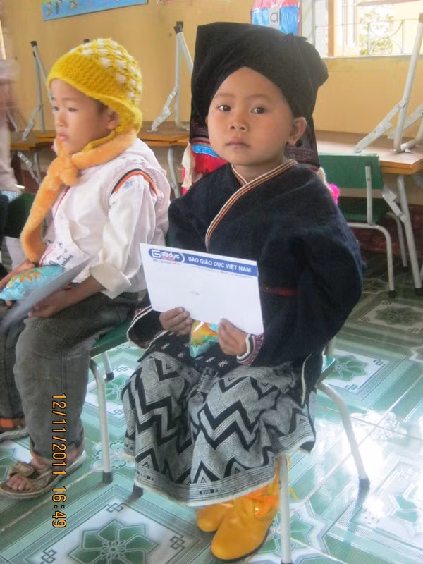 | Suốt cuộc trò chuyện của học sinh trường Kim Bon, cô bé này chỉ im lặng. Đôi mắt thi thoảng cụp xuống ngập ngừng. |