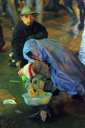 | Điểm tập hợp sau một đêm hành xác "kiếm ăn" của nhóm cái bang (Ảnh Thái Tâm - Bạn đọc) |