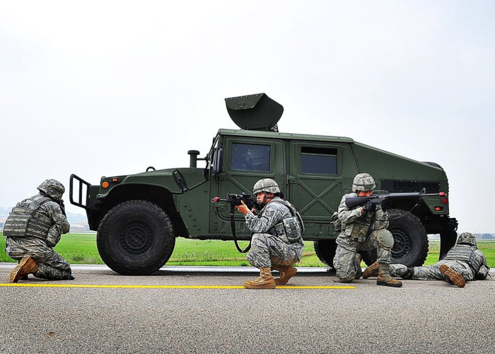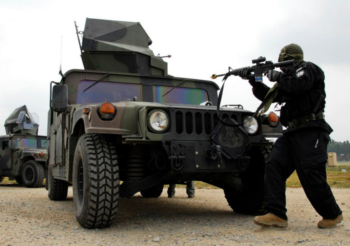| Kết cấu giáp mới được lắp đặt trên xe chiến đấu Humvee trên có thể bảo vệ pháo thủ đứng trên nóc xe khỏi làn đạn của các loại vũ khí bộ binh hạng nhẹ, giảm thiểu khả năng bị thương vong cho binh sỹ. |