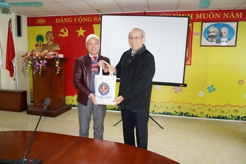 Thay mặt Hiệp hội, Giáo sư, Tiến sĩ Trần Hồng Quân đã trao tặng nhà trường một số đầu sách rất có giá trị khoa học.