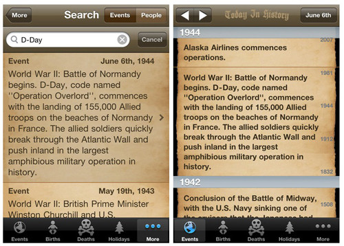 Cái tên của ứng dụng này đã nói lên tất cả: Khi một sự kiện có tính lịch sử đã từng xảy ra vào đúng ngày hôm nay trong quá khứ thì Today in History sẽ cho bạn biết mọi thứ về sự kiện đó. Hiện tại ứng dụng này đang có mặt trên gian ứng dụng số của iPad với hai phiên bản miễn phí (có quảng cáo) và có phí (1,99 USD) thế nhưng người dùng Android cũng có thể tìm được ứng dụng có chức năng tương tự với Today in History trên Market.