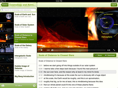 Khan Academy là ứng dụng di động sở hữu một nguồn dữ liệu lớn giúp cho người dùng có thể biết thêm được nhiều kiến thức thú vị thông qua các đoạn video trực tuyến được trình bày khá dễ hiểu và trực quan. Hiện tại, ứng dụng mới chỉ tương thích với iPad. Cơ sở dữ liệu của Khan Academy chứa tới 2700 đoạn video và bạn hoàn toàn có thể được tải chúng về để xem offline những khi không có mạng Wi-Fi.