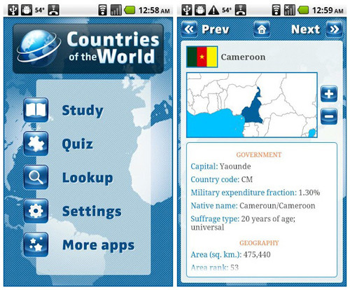Countries of the World tương thích với hệ điều hành Android và người dùng hoàn toàn có thể tải về phiên bản miễn phí của ứng dụng này trên Android Market.
