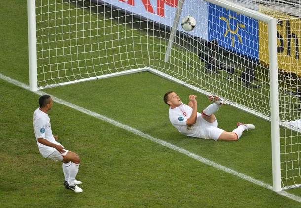 4: Phút 62, một đợt phản công mẫu mực của các cầu thủ Ukraine, kèm theo những sai lầm liên hoàn của các trọng tài khi không bắt việt vị Milevskiy rồi sau đó từ chối bàn thắng hợp lệ của Devic. Pha quay chậm cho thấy bóng đã hoàn toàn ở trong khung thành đội tuyển Anh trước khi bị John Terry phá ra.