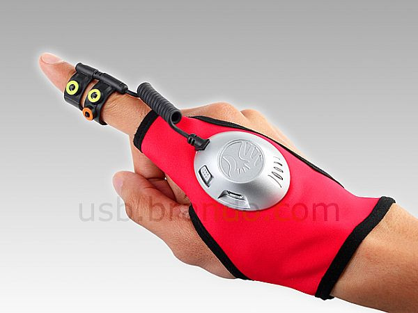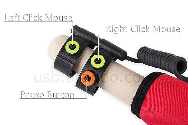 Chiếc găng tay này được làm bằng chất liệu nhẹ và chỉ nặng khoảng 52g. Chất liệu cao su tổng hợp và silicon đảm bảo cho việc điều chỉnh chuột dễ dàng và làm êm tay khi đeo vào. Bên cạnh đó, nó cũng được thiết kế giống như một con chuột máy tính bình thường với ba nút điều chỉnh bên trái, phải và một nút dừng ở giữa. Ba nút này được đeo lên ngón tay đeo nhẫn và gắn với nguồn điện chính thông qua một dây dẫn. Chiếc đĩa màu bạc hình tròn được gắn chắc chắn vào mặt trên của găng tay với nút on/off, một cổng USB , một loạt các đèn LED và pin sạc bên trong